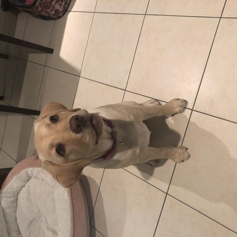 A 0 año(s), 6 mes(es) y 22 día(s), Xéna, Labrador Retriever hembra , pesado 12.43 kg.
