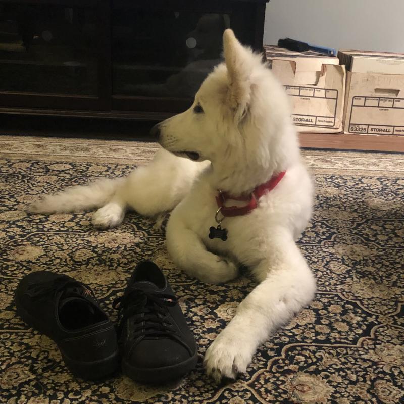 A 0 año(s), 5 mes(es) y 1 día(s), Amber, Pastor Blanco Suizo hembra , pesado 19.3 kg.