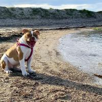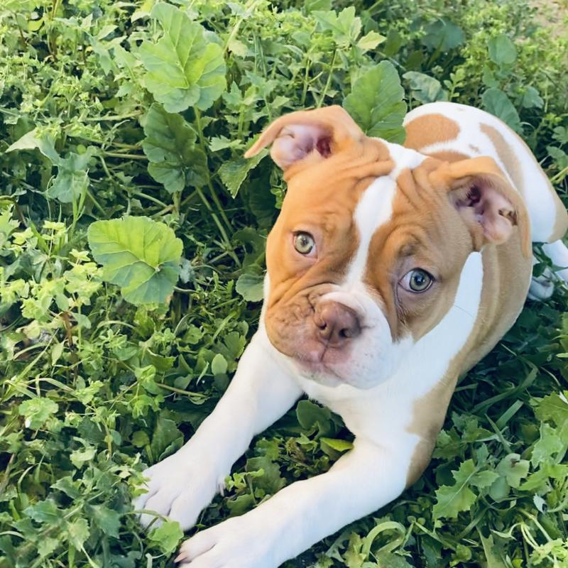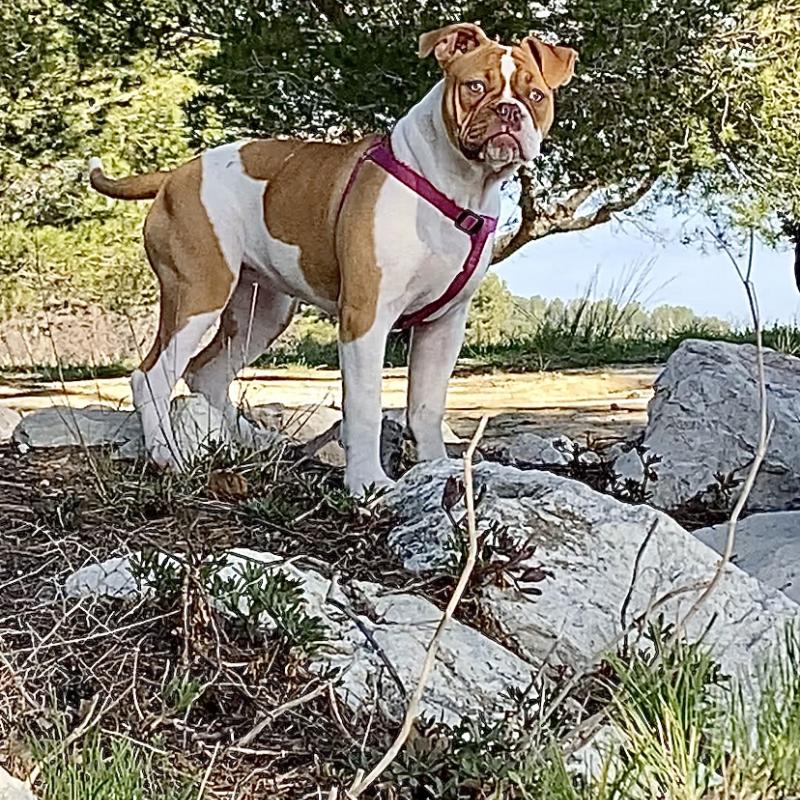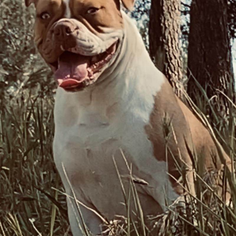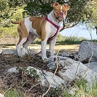 A 1 año(s), 3 mes(es) y 3 día(s), Honey, Bulldog americano hembra , pesado 31.8 kg.
