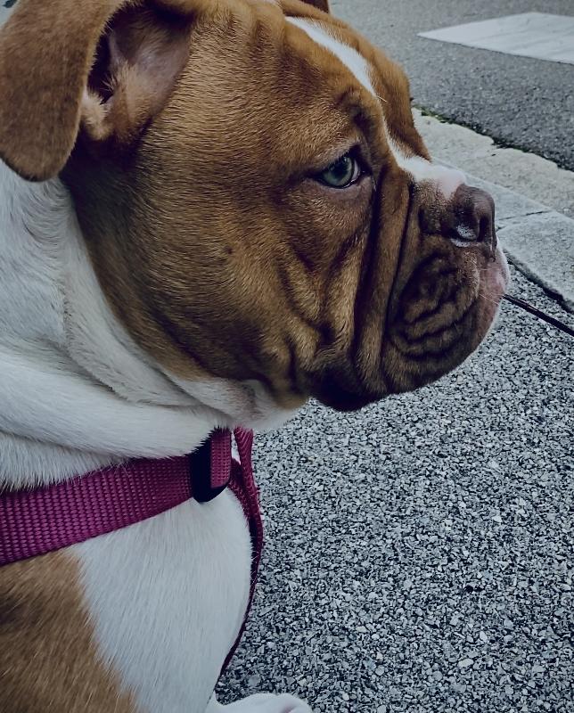 A 1 año(s), 5 mes(es) y 8 día(s), Honey, Bulldog americano hembra , pesado 36.5 kg.