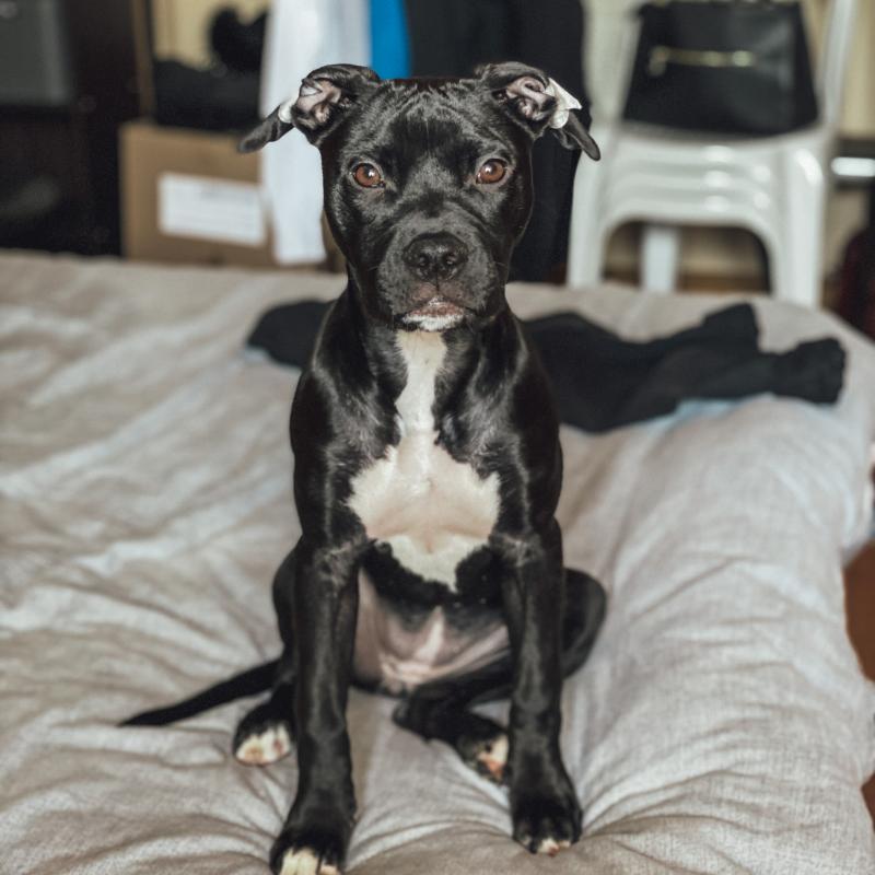 A 0 año(s), 10 mes(es) y 22 día(s), Dea, American Staff hembra , pesado 28.35 kg.