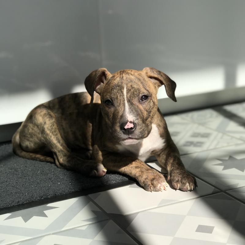 A 0 año(s), 6 mes(es) y 10 día(s), Dylan, American Staff masculino , pesado 22 kg.
