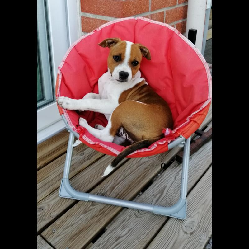A 5 año(s), 7 mes(es) y 20 día(s), Roxy, Staffordshire Bull Terrier hembra , pesado 16.3 kg.