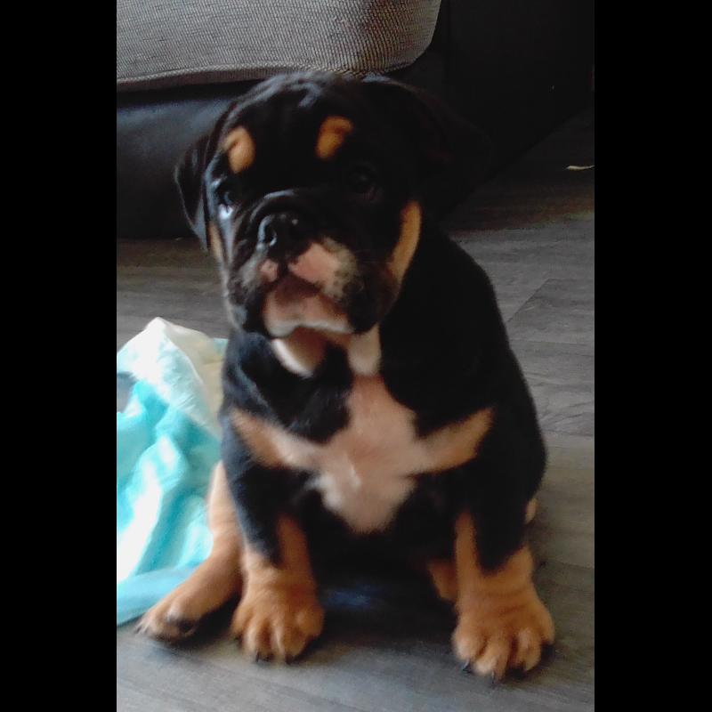 A 0 año(s), 2 mes(es) y 21 día(s), Venus, Bulldog hembra , pesado 9.2 kg.