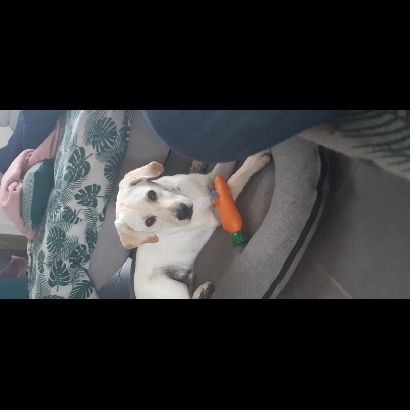 A 0 año(s), 7 mes(es) y 3 día(s), Alpha, Labrador Retriever masculino , pesado 23 kg.
