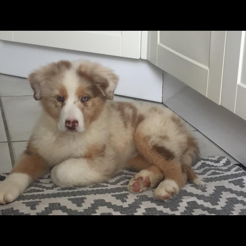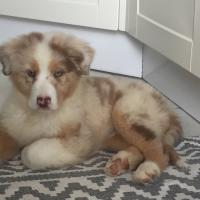 A 0 año(s), 3 mes(es) y 1 día(s), Opal, Pastor Australiano hembra , pesado 7.3 kg.