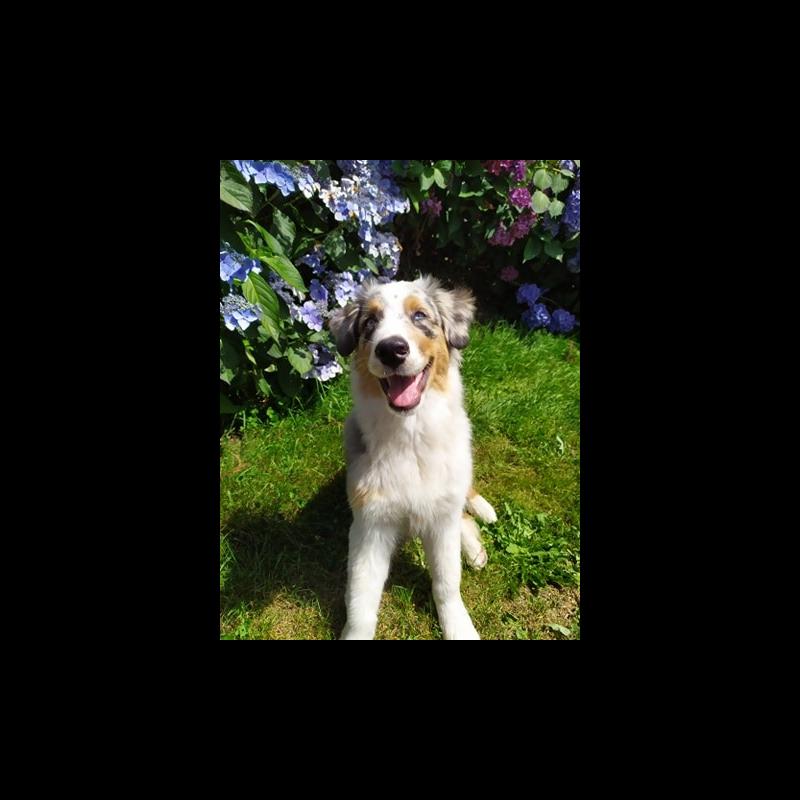 A 0 año(s), 10 mes(es) y 25 día(s), Aïko, Pastor Australiano masculino , pesado 26.75 kg.