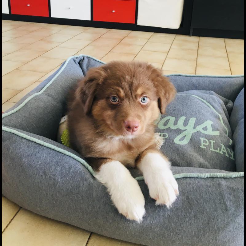 A 0 año(s), 6 mes(es) y 23 día(s), Nova, Pastor Australiano hembra , pesado 20 kg.