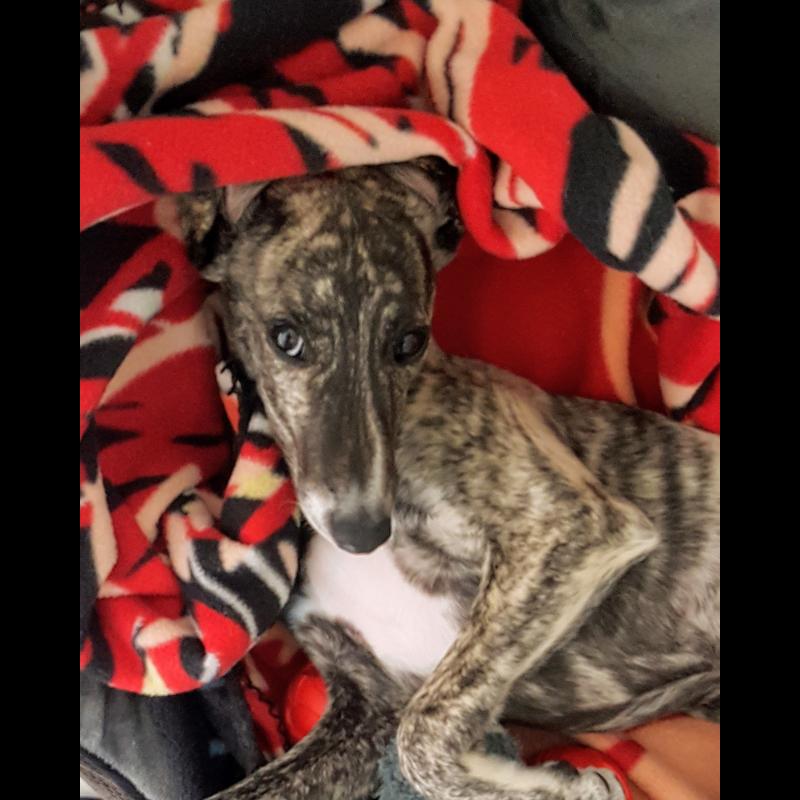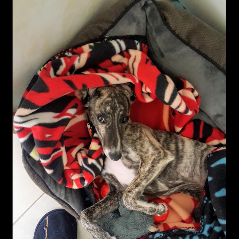 A 0 año(s), 3 mes(es) y 20 día(s), Enzo, Whippet masculino , pesado 6.5 kg.