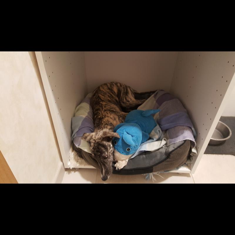 A 0 año(s), 3 mes(es) y 11 día(s), Enzo, Whippet masculino , pesado 6 kg.