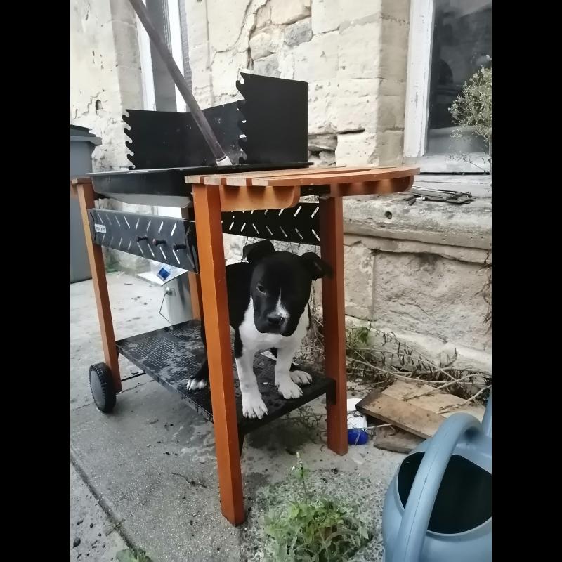 A 0 año(s), 7 mes(es) y 10 día(s), Spartaco, American Staff masculino , pesado 23 kg.