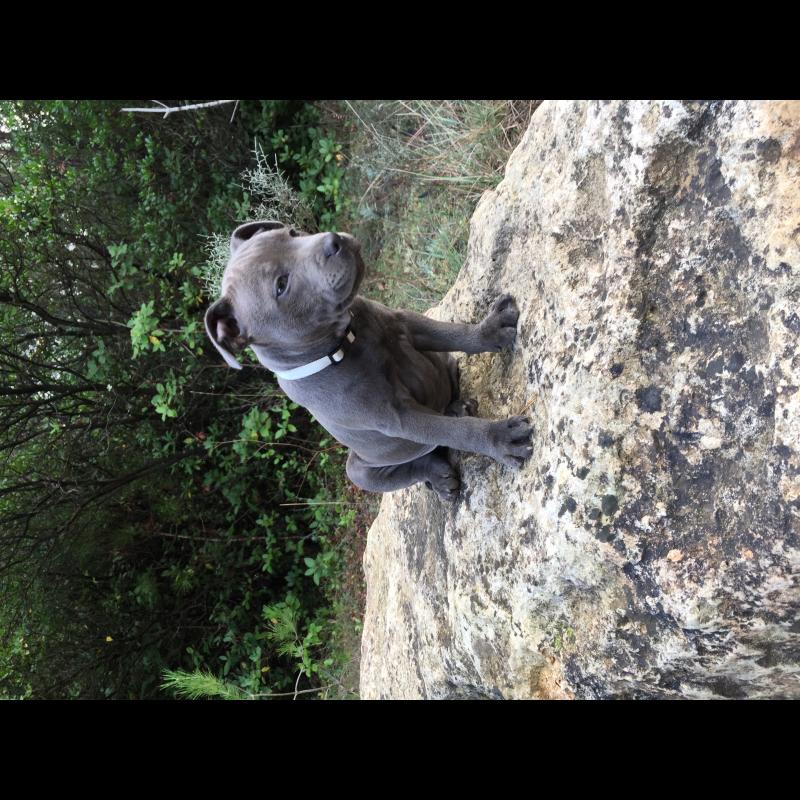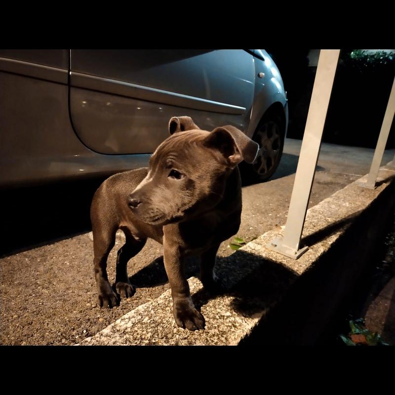A 0 año(s), 6 mes(es) y 28 día(s), Paupiette, Staffordshire Bull Terrier masculino , pesado 19 kg.