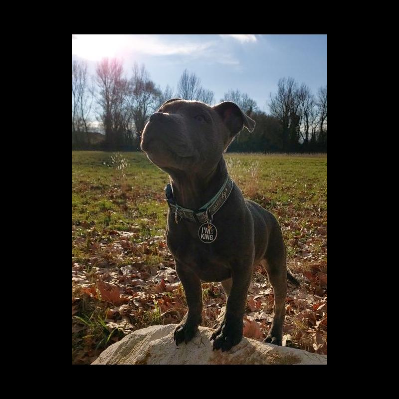 A 1 año(s), 9 mes(es) y 17 día(s), Léon, Staffordshire Bull Terrier masculino , pesado 16.5 kg.