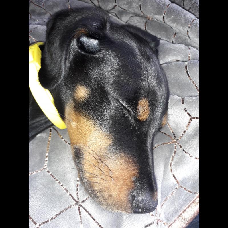 A 0 año(s), 5 mes(es) y 24 día(s), Abel, Dóbermann masculino , pesado 32.48 kg.