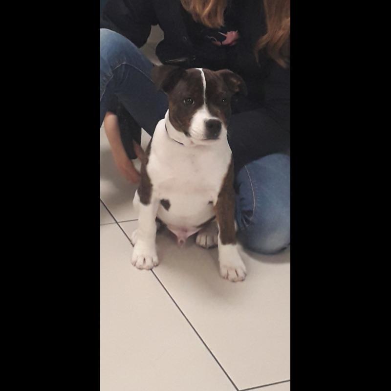 A 0 año(s), 6 mes(es) y 28 día(s), Paupiette, Staffordshire Bull Terrier masculino , pesado 19 kg.