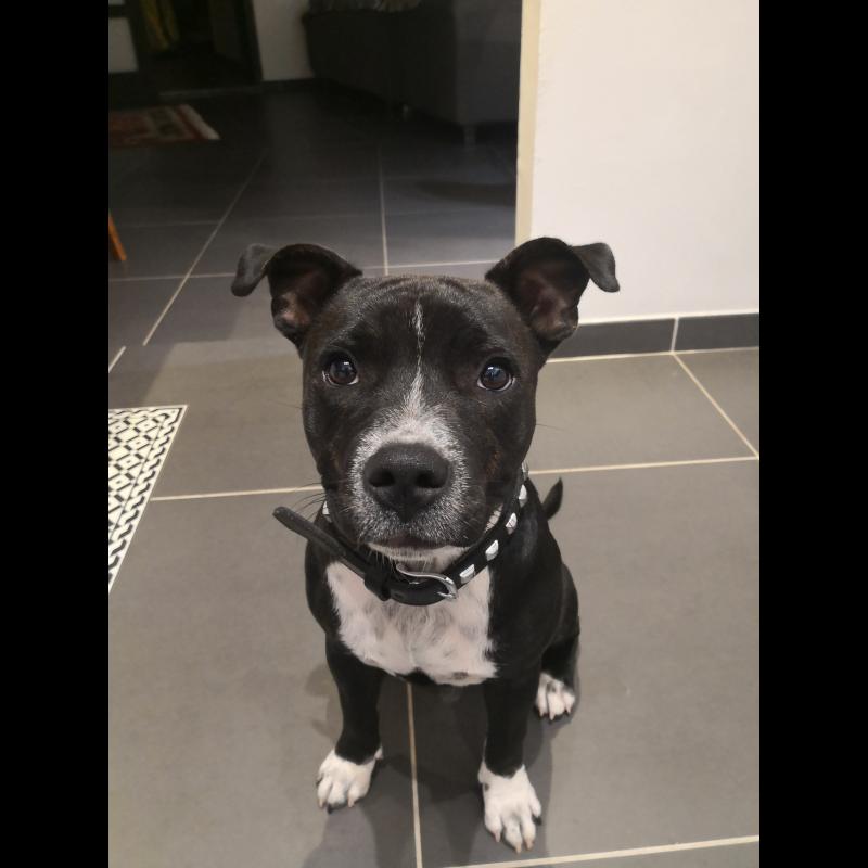 A 0 año(s), 6 mes(es) y 28 día(s), Paupiette, Staffordshire Bull Terrier masculino , pesado 19 kg.