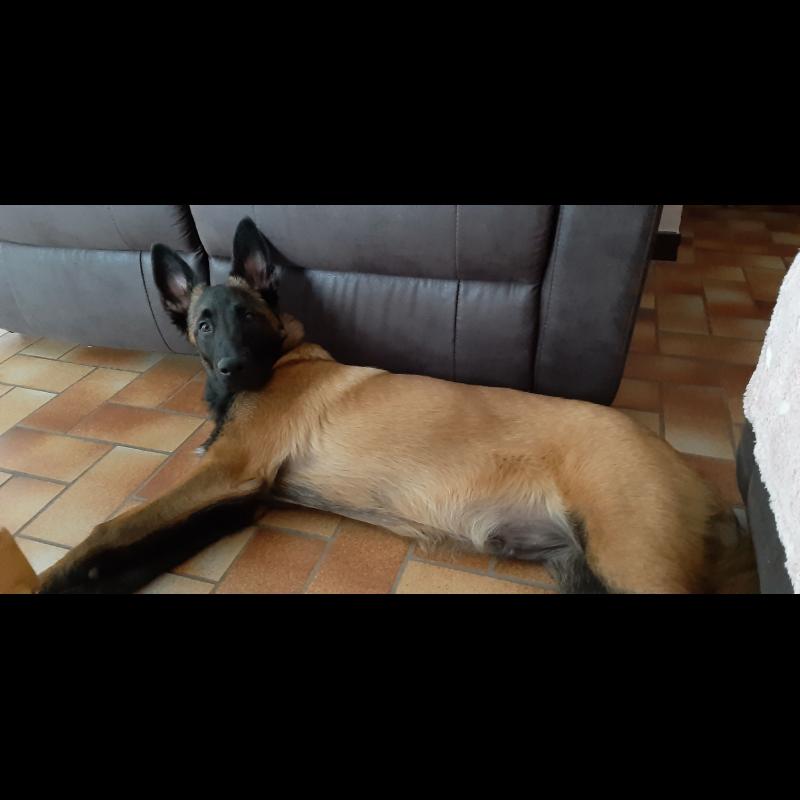 A 0 año(s), 3 mes(es) y 16 día(s), Ades, Pastor Belga Malinois masculino , pesado 12.3 kg.