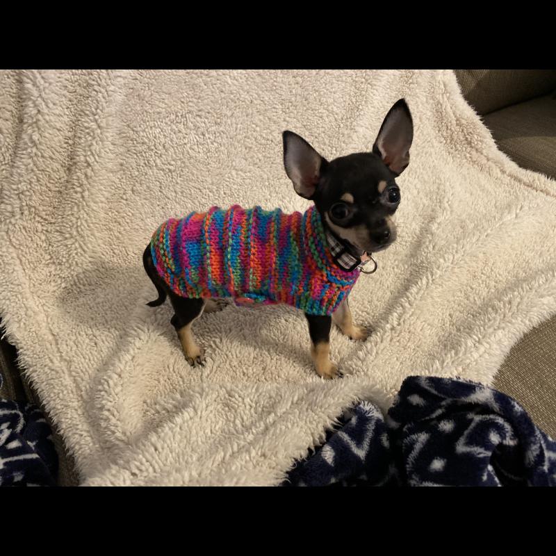A 0 año(s), 2 mes(es) y 17 día(s), Lola, Chihuahua hembra , pesado 0.77 kg.