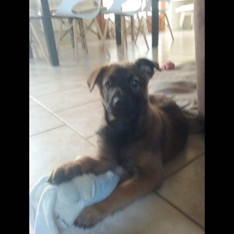 A 0 año(s), 6 mes(es) y 27 día(s), Quill, Pastor Belga masculino , pesado 20.41 kg.