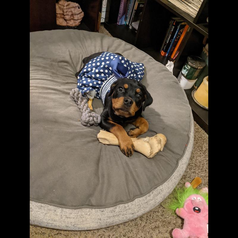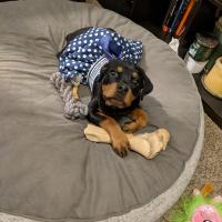 A 0 año(s), 4 mes(es) y 7 día(s), Lia, Rottweiler hembra , pesado 14 kg.