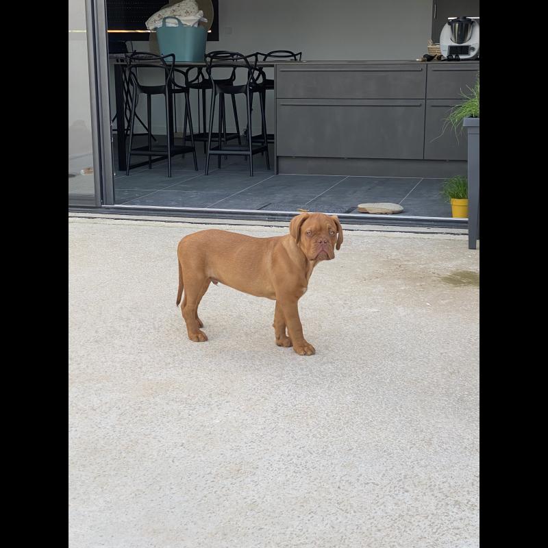 A 0 año(s), 9 mes(es) y 15 día(s), Aïko, Dogo De Burdeos masculino , pesado 59 kg.
