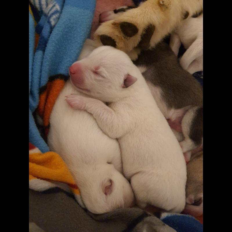 A 0 año(s), 2 mes(es) y 30 día(s), Aika, Husky Siberiano hembra , pesado 6.95 kg.