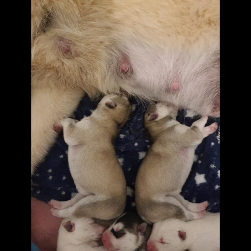 A 0 año(s), 2 mes(es) y 30 día(s), Aika, Husky Siberiano hembra , pesado 6.95 kg.