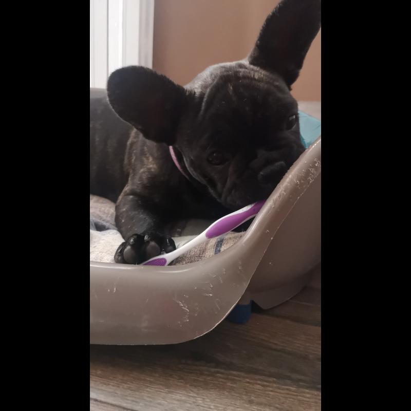 A 1 año(s), 10 mes(es) y 15 día(s), Tutty, Bulldog Francés hembra , pesado 10.48 kg.