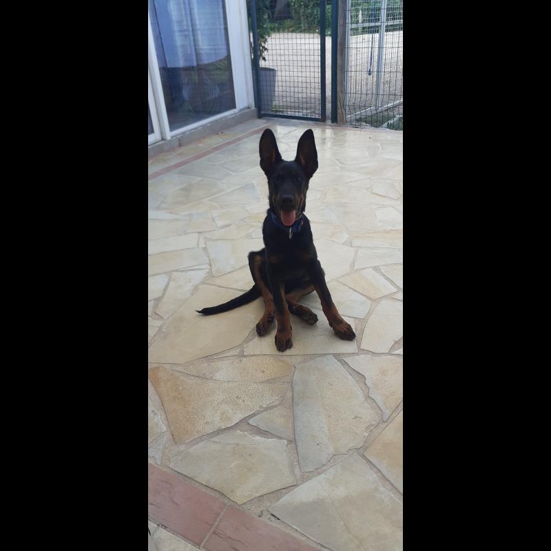 A 1 año(s), 2 mes(es) y 23 día(s), Alf, Beauceron masculino , pesado 44 kg.