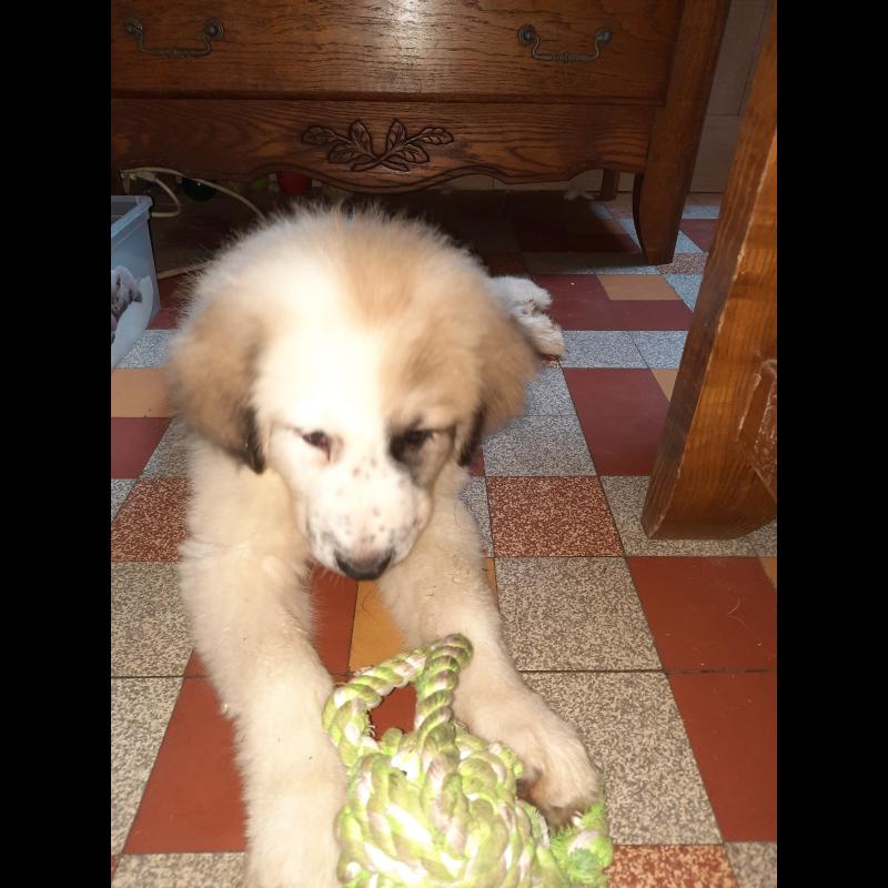 A 0 año(s), 2 mes(es) y 9 día(s), Dante, Montaña de los Pirineos hembra , pesado 7 kg.
