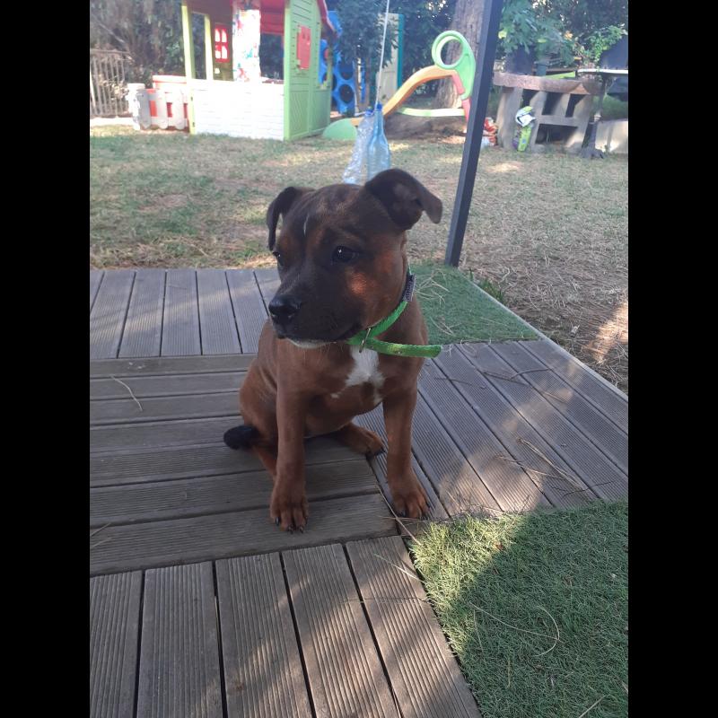 A 3 año(s), 7 mes(es) y 1 día(s), Taya, Staffordshire Bull Terrier hembra , pesado 13.5 kg.