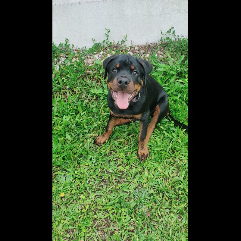 A 0 año(s), 3 mes(es) y 23 día(s), Arko, Rottweiler masculino , pesado 18.5 kg.