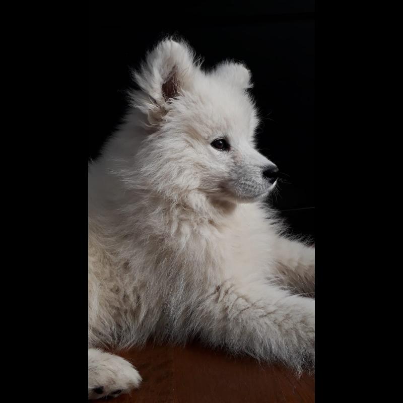 A 0 año(s), 3 mes(es) y 20 día(s), Sayah, Samoyedo, hembra, pesado 7 kg.