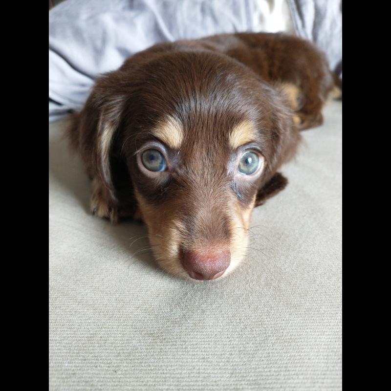 A 0 año(s), 2 mes(es) y 5 día(s), Amora, Dachshund (Pelo Largo) hembra , pesado 2 kg.
