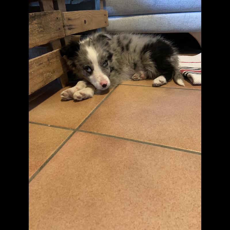 A 0 año(s), 3 mes(es) y 2 día(s), Héra, Border Collie hembra , pesado 10.2 kg.