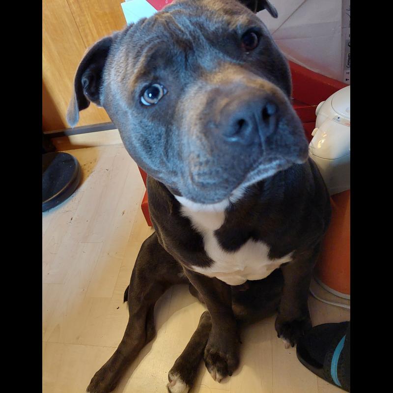 A 0 año(s), 6 mes(es) y 28 día(s), Paupiette, Staffordshire Bull Terrier masculino , pesado 19 kg.