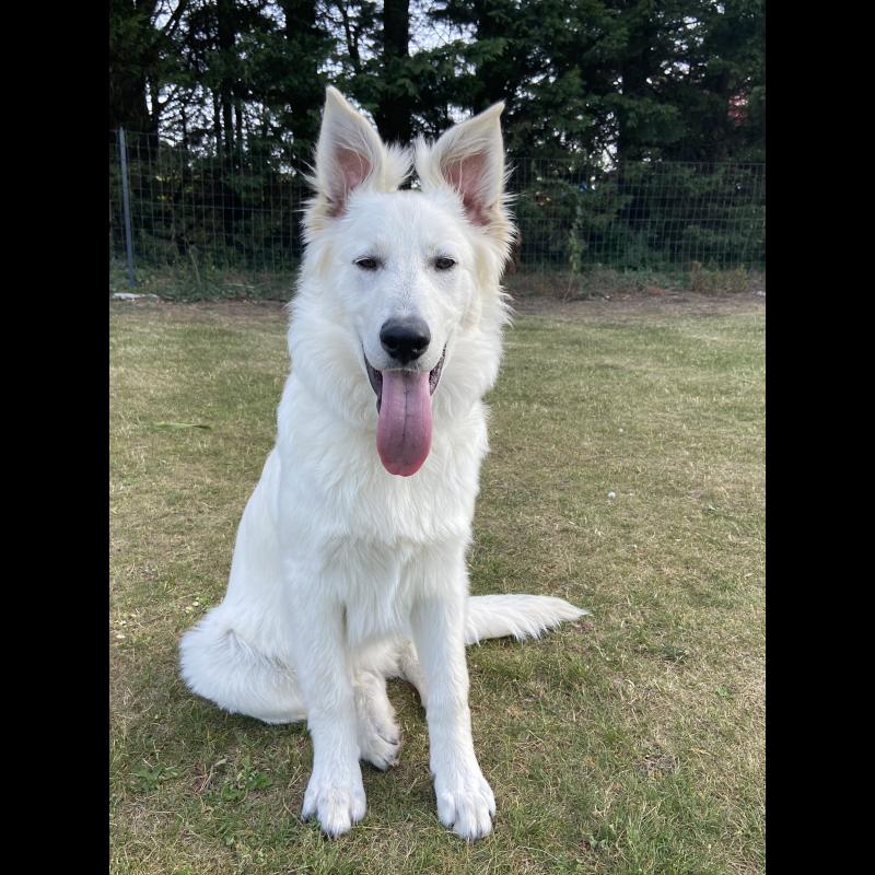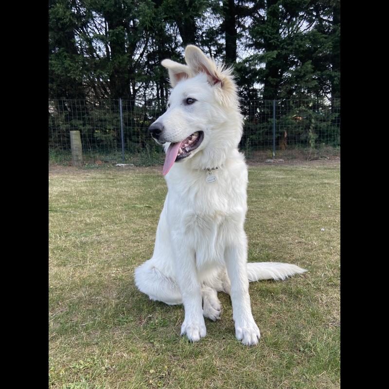 A 0 año(s), 8 mes(es) y 30 día(s), lucky, Pastor Blanco Suizo masculino , pesado 32.4 kg.