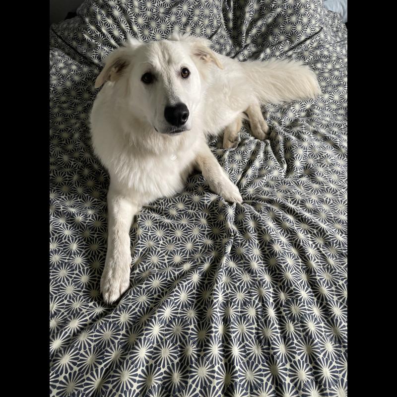 A 1 año(s), 5 mes(es) y 22 día(s), Lumi, Pastor Blanco Suizo masculino , pesado 30.2 kg.