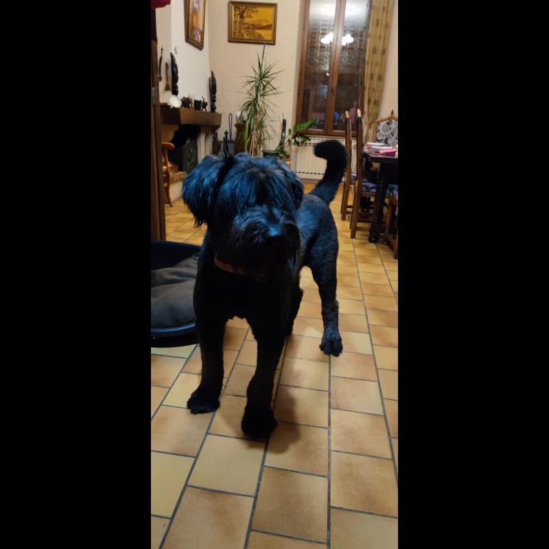A 1 año(s), 2 mes(es) y 11 día(s), Freddy, Schnauzer Gigante masculino , pesado 34 kg.