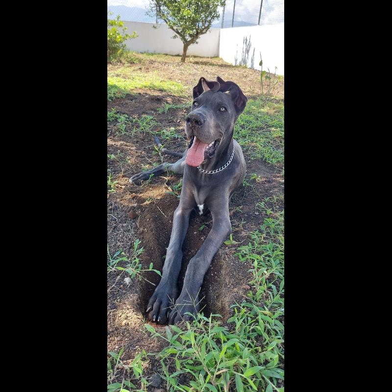 A 1 año(s), 4 mes(es) y 29 día(s), Cacao, Gran Danés masculino , pesado 72 kg.