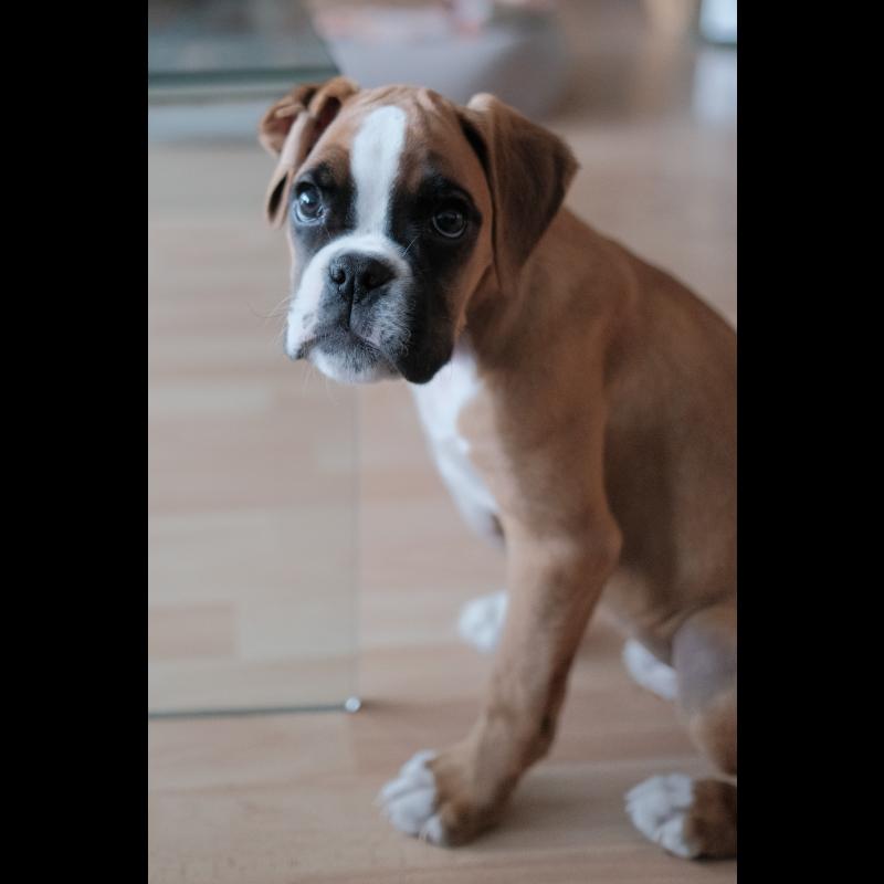 A 0 año(s), 5 mes(es) y 26 día(s), Chira, Bóxer hembra , pesado 21.6 kg.